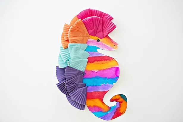 Les enfants qui aiment les créatures marines et les projets artistiques colorés et désordonnés adoreront ce bricolage vibrant d’hippocampe à l’aquarelle.