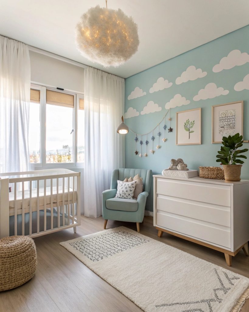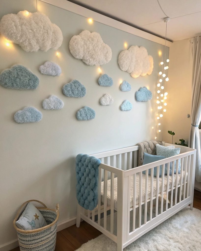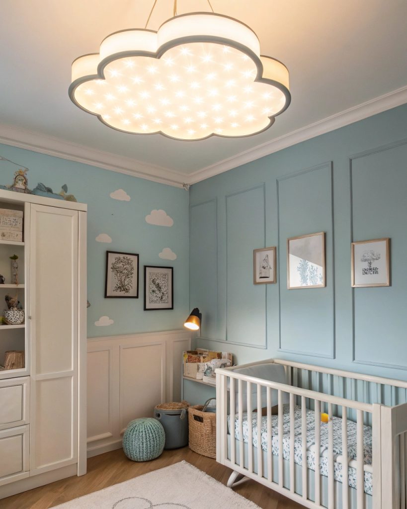 Pour ajouter une touche magique à la chambre de bébé, un plafonnier en forme de nuage peut transformer l’espace en un havre onirique.