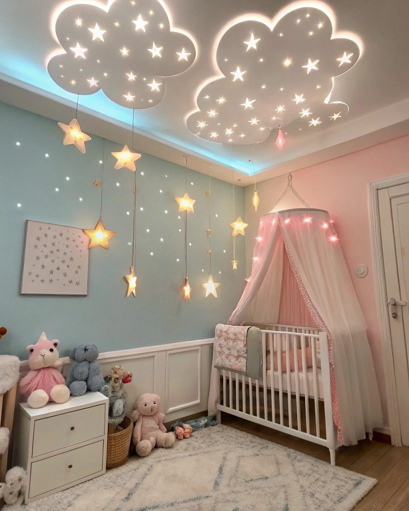 En plus, c’est comme avoir un petit morceau de ciel directement dans la pièce—comment résister à ce côté mignon ? Pensez à utiliser des ampoules blanc chaud pour renforcer l’effet apaisant et créer une atmosphère sereine.