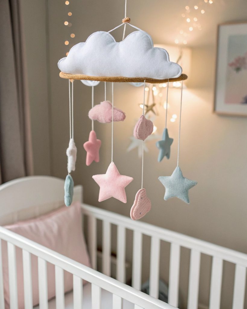 Un mobile nuage peut apporter cette ambiance rêveuse et apaisante que vous recherchez pour la chambre de bébé, juste au-dessus du berceau.