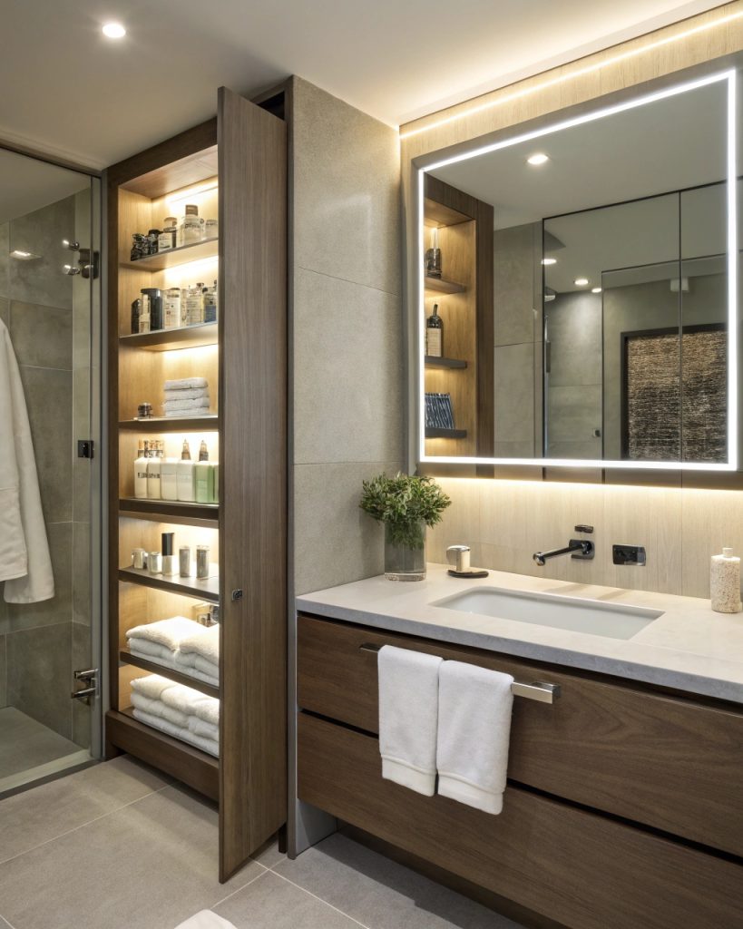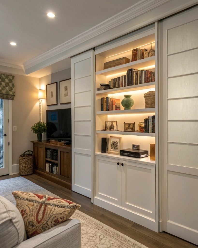 - Utiliser des armoires encastrées ou des panneaux coulissants pour une touche élégante
