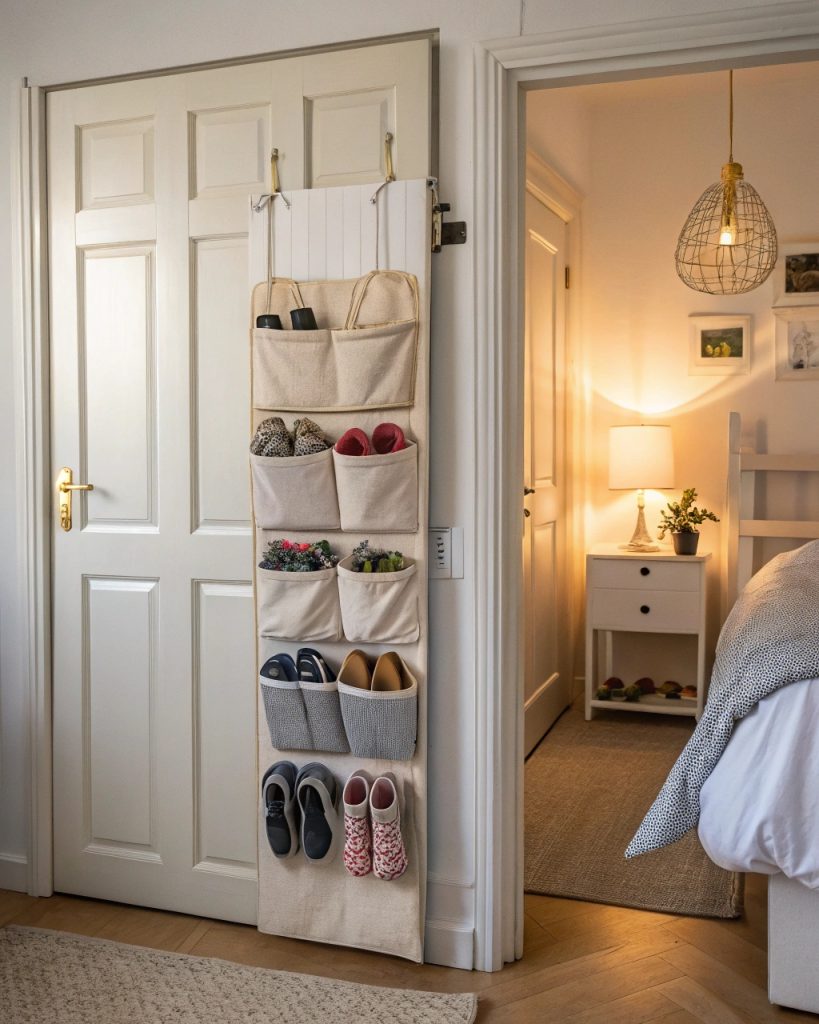 Lorsque vous jonglez avec un emploi du temps chargé et une montagne de choses, il est facile de négliger l’espace souvent ignoré derrière vos portes. Installez des crochets ou des poches pour tenir des chaussures, des accessoires ou des produits de beauté, et utilisez un porte-épices à l’intérieur d’une porte de placard pour désencombrer la cuisine. De plus, des crochets adhésifs sont un avantage pour un retrait facile, garantissant que vos portes restent sans dommages et élégantes ! Envisagez d’ajouter des organisateurs derrière la porte pour maximiser l’espace vertical et garder les essentiels à portée de main.