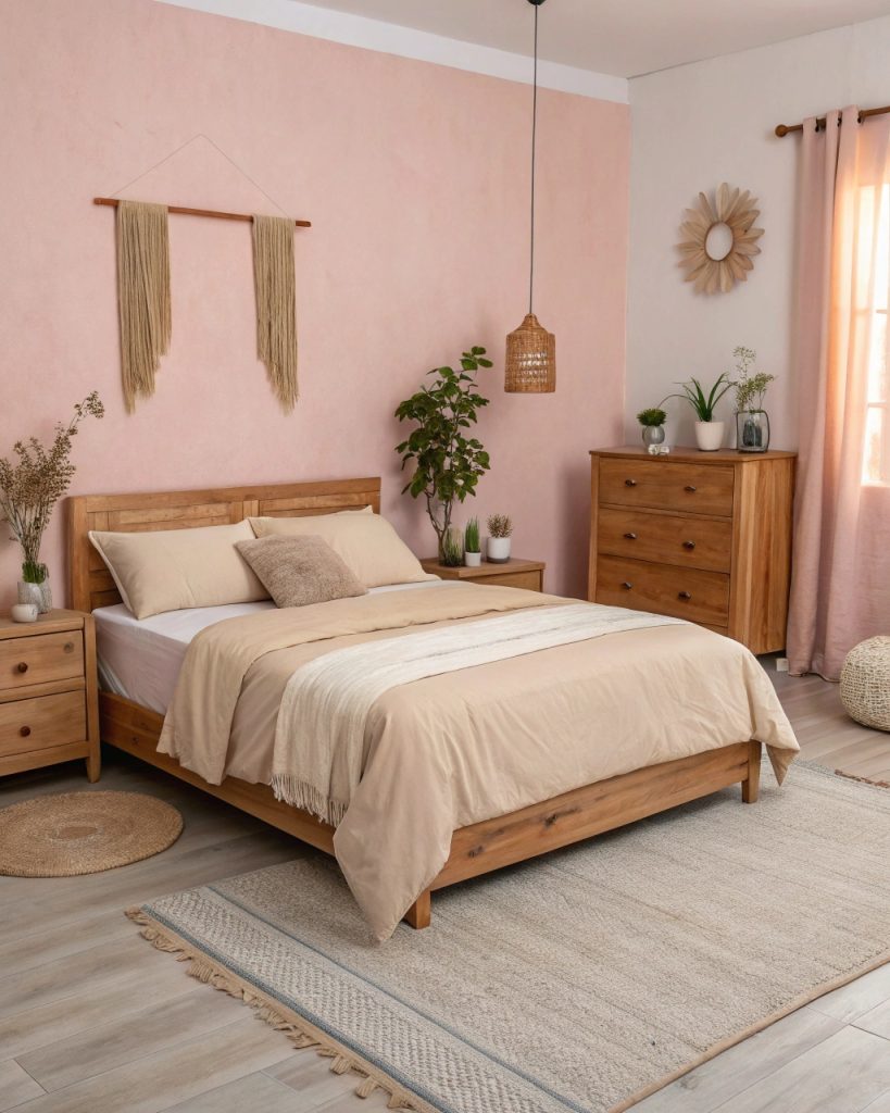 Chambre rose et beige pour une touche naturelle