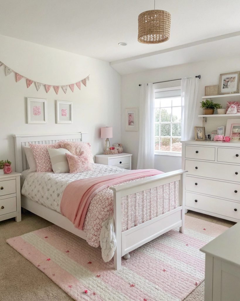 Chambre rose et blanche pour une ambiance lumineuse