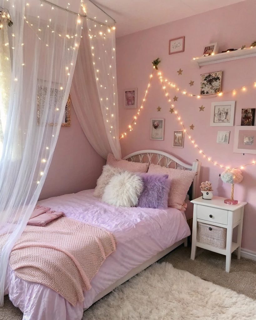 Imaginez entrer dans un havre de rêve où des murs rose poudré vous enveloppent comme une couverture douillette.