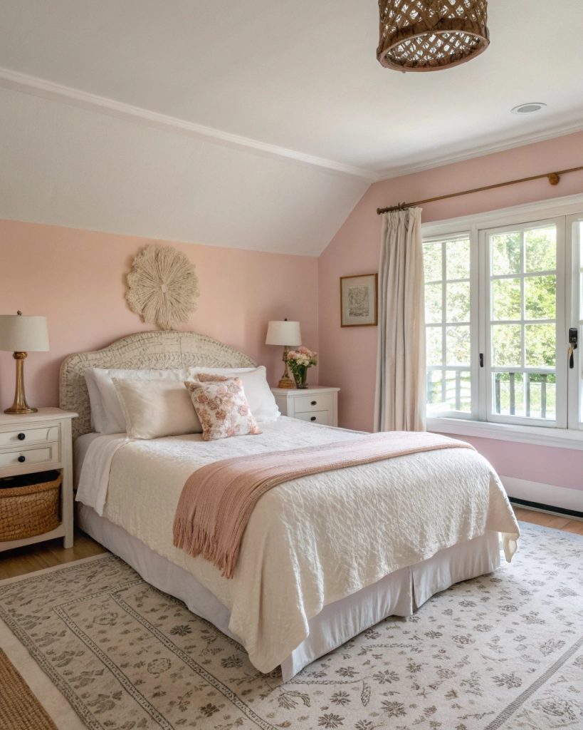 Chambre rose pastel et blanc cassé pour une douceur intemporelle