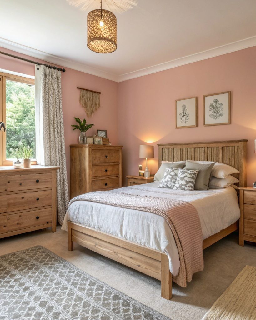 Chambre Rose Poudré avec Bois Naturel