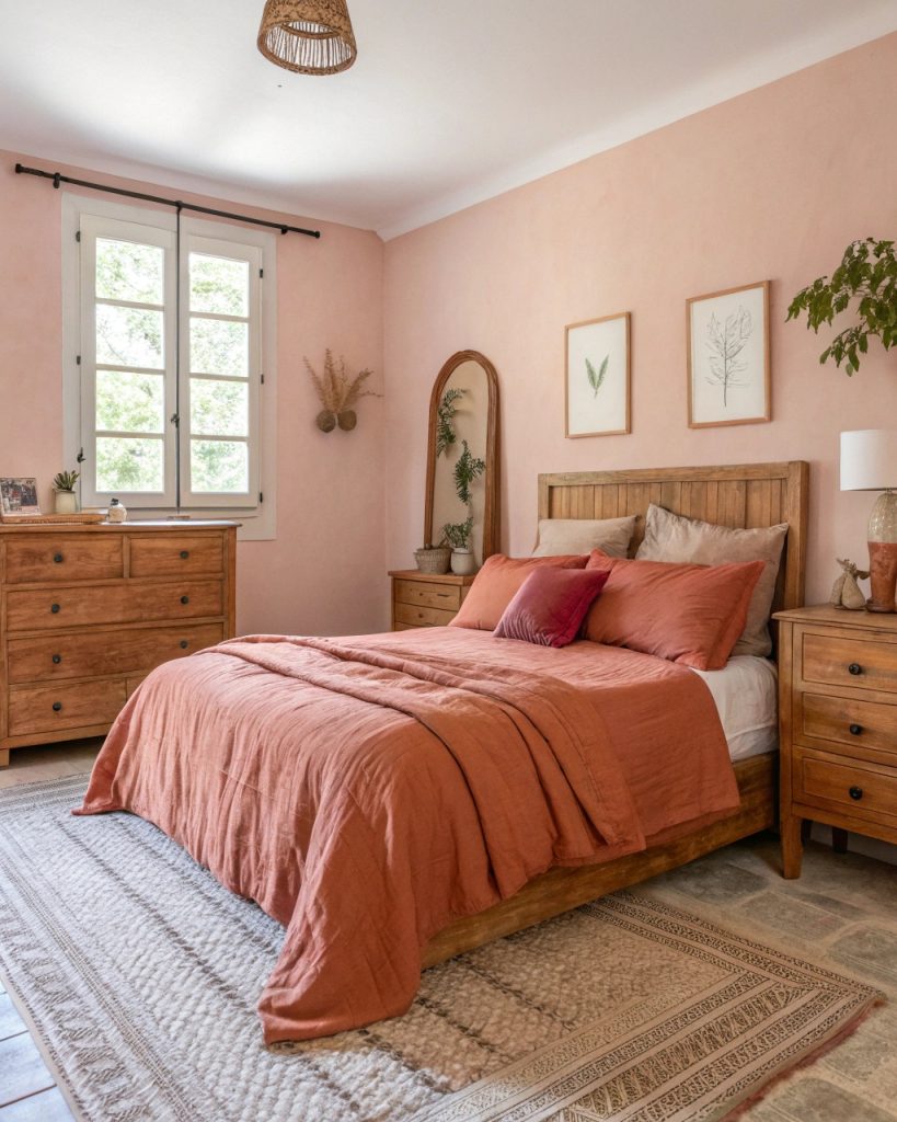 Chambre Rose et Terre Cuite pour une Ambiance Chaude