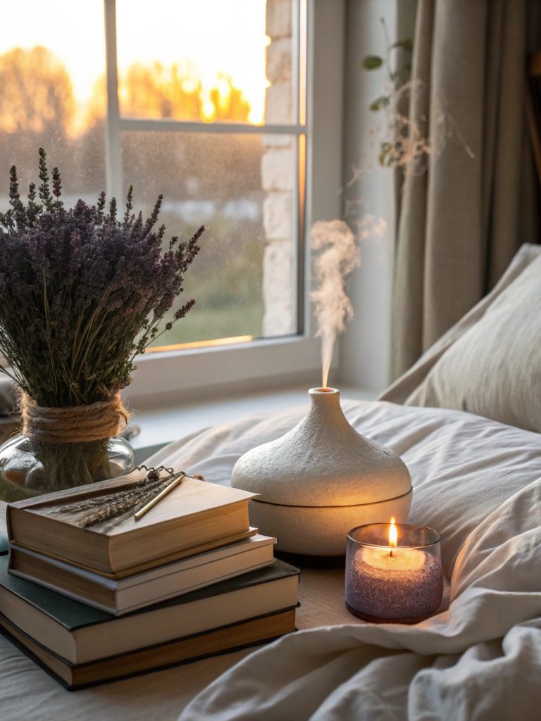 Commencez par des diffuseurs d’huiles essentielles utilisant de la lavande, des agrumes ou de l’eucalyptus pour un parfum revigorant. Allumez des bougies en soja aux notes de linge frais ou florales pour ajouter de la chaleur.