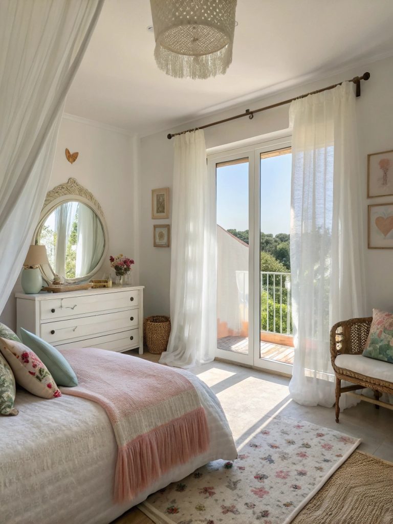 Choisissez des coussins de décoration ou des rideaux avec des motifs floraux discrets pour une ambiance douce.