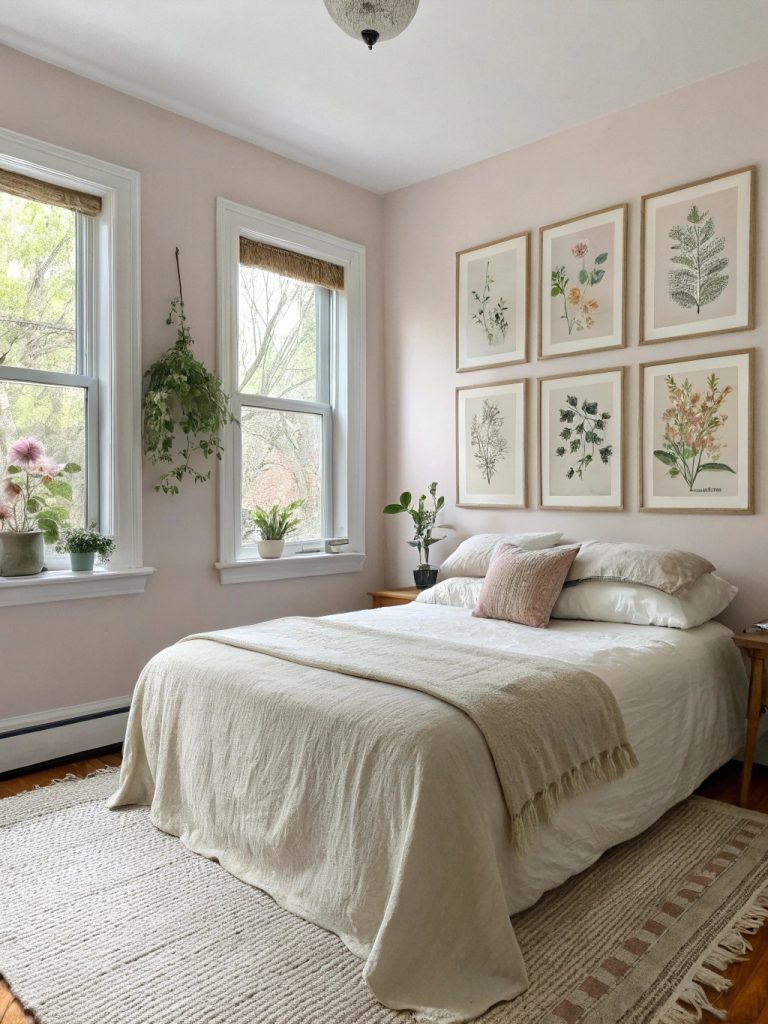 Transformez votre chambre en un havre de paix printanier en commençant par des couleurs naturelles fraîches comme le vert sauge ou le rose poudré, équilibrées avec des tons neutres.